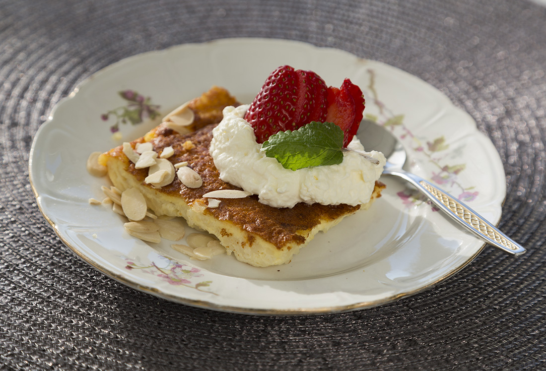 4.Servera med sylt och vispad grädde. Dekorera gärna med mandelspån.